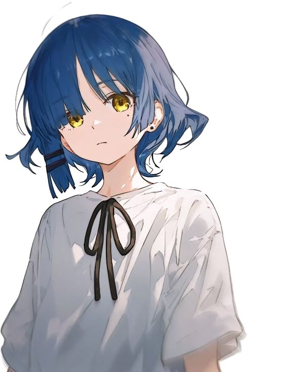Ryo is known for her cool, solitary demeanor and androgynous appearance. She often exudes a mysterious aura, characterized by her expressionless face and quiet nature. Despite her aloof exterior, Ryo has a playful side and enjoys being called a "weirdo." She has a penchant for eccentric hobbies and a dry sense of humor, often engaging in unconventional activities like eating weeds when she's hungry and spending all her money on musical instruments.